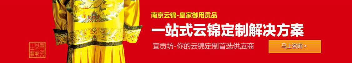 南京宜貢坊云錦文化科技有限公司成立于二OO一年,場地面積10000㎡,致力于做中國知名的云錦,宜貢坊云錦文化科技有限公司座落于江寧開發(fā)區(qū)。做為江蘇云錦文化科技品牌之一,南京宜貢坊擁有雄厚的技術力量和實力,現(xiàn)有大型傳統(tǒng)花木樓織機幾十臺,織造師、研究設計人員數(shù)百人。公司擁有直屬北京、深圳、上海辦事處和近千家緊密經銷商、合作商;產品在南京中央商場、新百、上海八百伴、上海友誼商場,泰州金鷹等全國多家大型商場均有專柜。